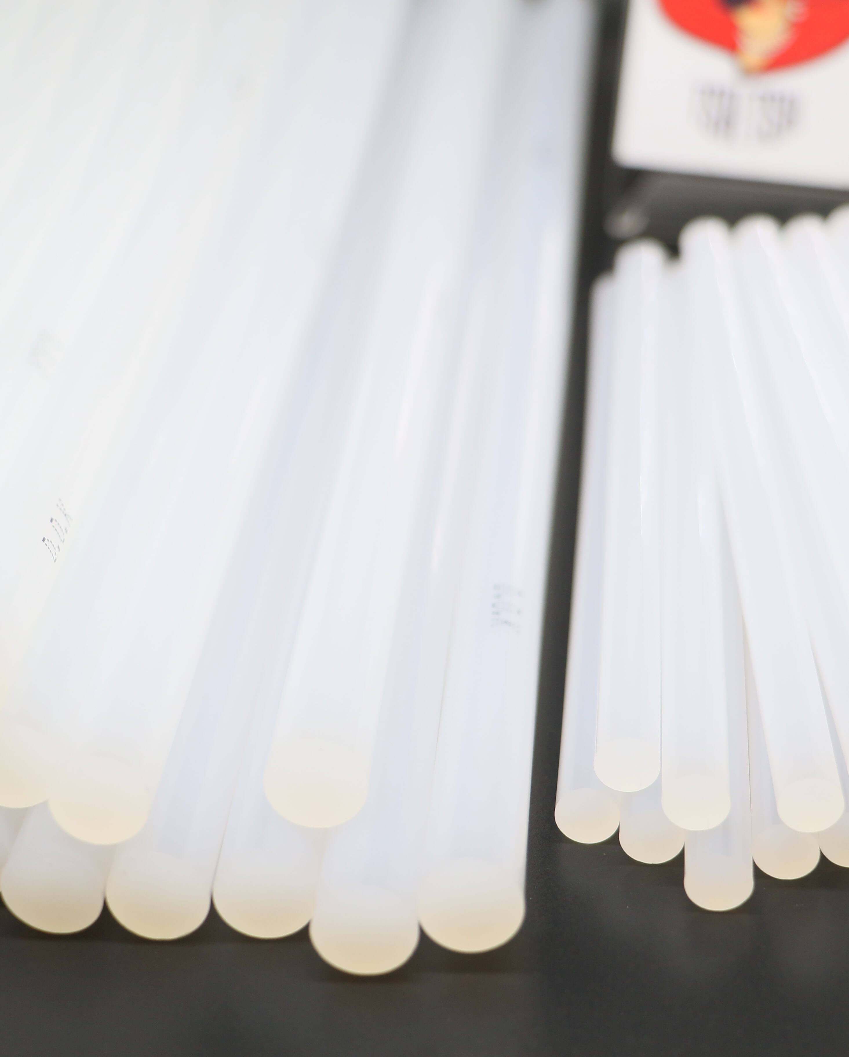 wish listกาวแท่งขนาดใหญ่ สำหรับใส่ปืนยิงกาวขนาดใหญ่ สีขาวขุ่น แท่งยาวประมาณ 29.7 ซม. แท่งขนาดประมาณ 9.20 มม. ใช้สำหรับประสานสิ่งของเข้าด้วยกัน กาวหลอมละลายได้ด้วยความร้อน และแข็งตัวเมื่อปล่อยให้แห้งหลังใช้งาน ควรใช้คู่กับปืนยิงกาว
