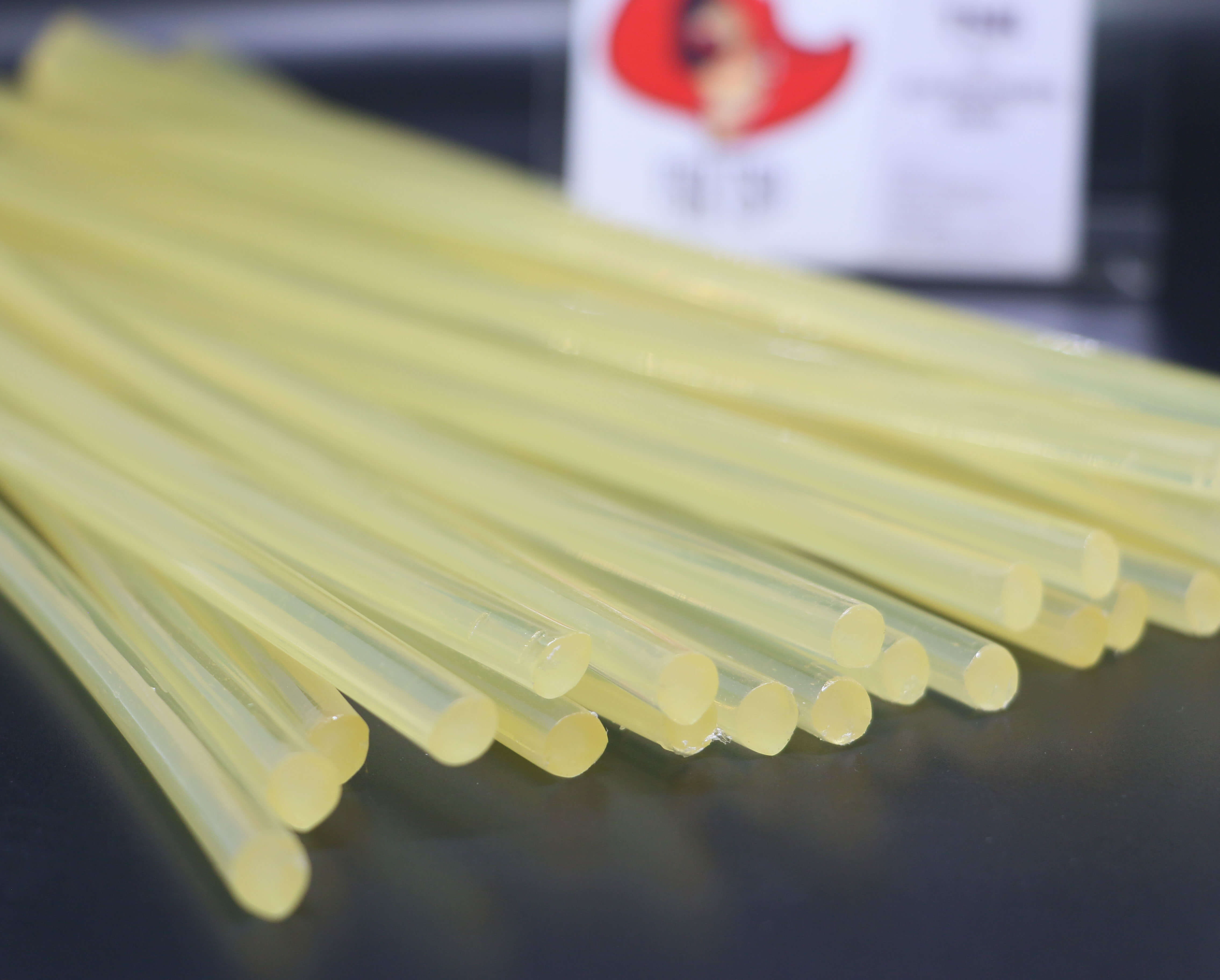 wish listกาวแท่ง ขนาดเล็ก สำหรับใส่ปืนยิงกาวขนาดเล็ก สีเหลืองใส แท่งยาวประมาณ 27 ซม. ขนาดประมาณ 4.04 มิล ใช้สำหรับประสานสิ่งของเข้าด้วยกัน กาวหลอมละลายได้ด้วยความร้อน และแข็งตัวเมื่อปล่อยให้แห้งหลังใช้งาน ควรใช้คู่กับปืนยิงกาว