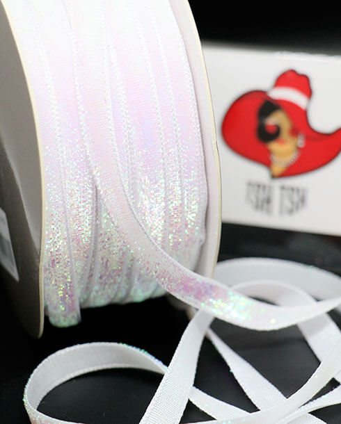 10 mm. Glitter Velvet Ribbon 36 Yards White Color