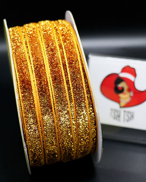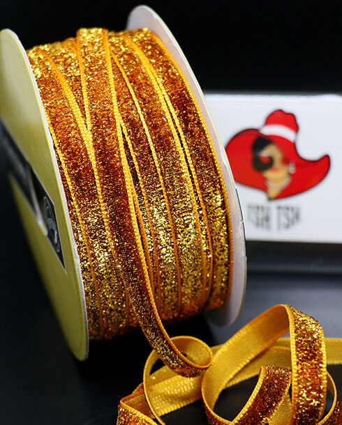 10 mm. Glitter Velvet Ribbon 36 Yards Yellow Color