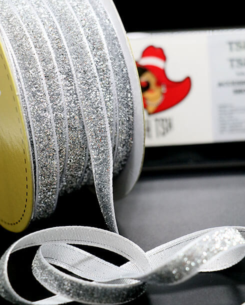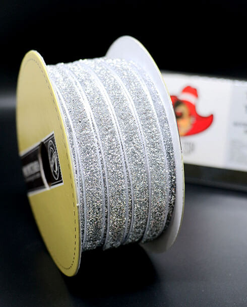 10 mm. Glitter Velvet Ribbon Silver Color