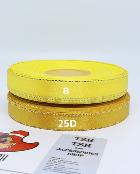 wish listThis is an excellent golden edge, single face satin ribbon. It would be perfect for gift wrap, card making, sewing, scrapbooking, hair bows and home decor embellishments. This ribbon would also be ideal for floral arrangements, weddings, Valentine, summer, Christmas and winter projects.