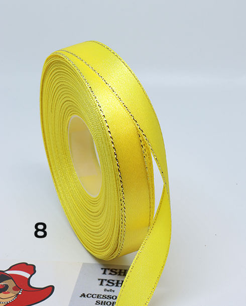 1/2 (13 mm.) Golden Edge Single Face Satin Ribbon 33 Yards Yellow Color No.8