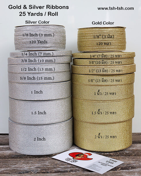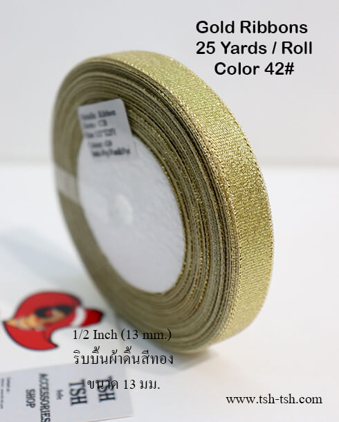 wish list13 mm. gold ribbon, 25 yards. Used for garments, decorative items and other ceremonies. The fabric is tightly woven, shiny, beautiful, molded. Available in many sizes, both gold and silver. Available in both retail and wholesale.