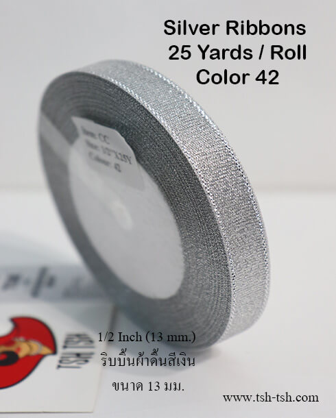 wish list13 mm. Silver ribbon, 25 yards. Used for garments, decorative items and other ceremonies. The fabric is tightly woven, shiny, beautiful, molded. Available in many sizes, both gold and silver. Available in both retail and wholesale.