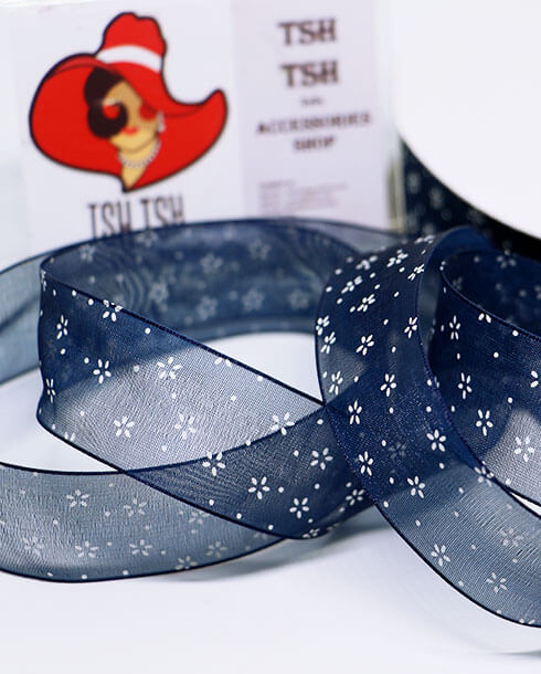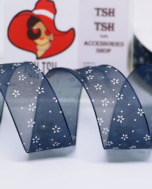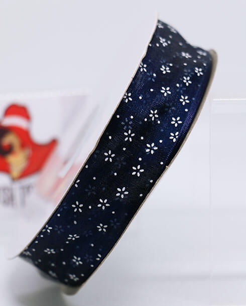 1 Inch Organza Ribbon Navy Blue with White Daisy Flower Printed