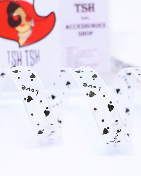 1/2 (13 mm.) Organza Ribbon White with Black Love Printed Color No.01# 50 Yards