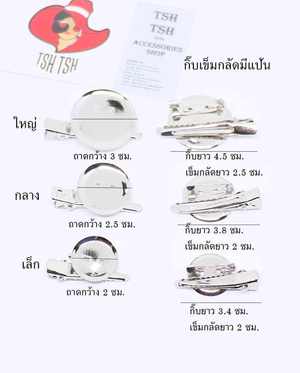 wish listเข็มกลัดติดงาน ชนิดมีแป้นกลมและกิ๊บ ขนาดจาน 25 มิล ใช้สำหรับผลิตสินค้าประเภทเข็มกลัดและเครื่องประดับต่างๆ คุณภาพอย่างดี ใช้ผลิตสินค้าได้สวยงามทนทาน มีจำหน่ายทั้งปลีกและส่ง ราคาย่อมเยา