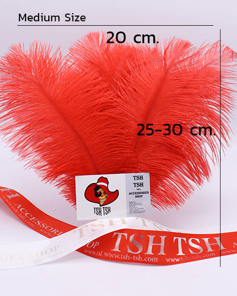 ขนนกกระจอกเทศแบบก้านขนาดกลาง (25-30 ซม.) สีแดง