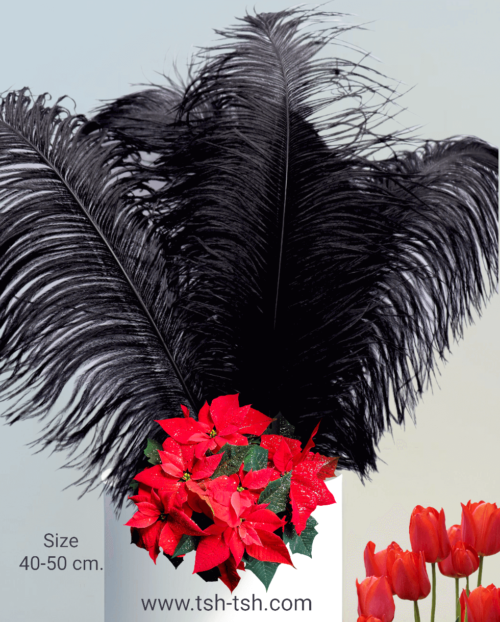 ขนนกกระจอกเทศแบบก้านขนาดใหญ่ (40-50 ซม.) สีดำ