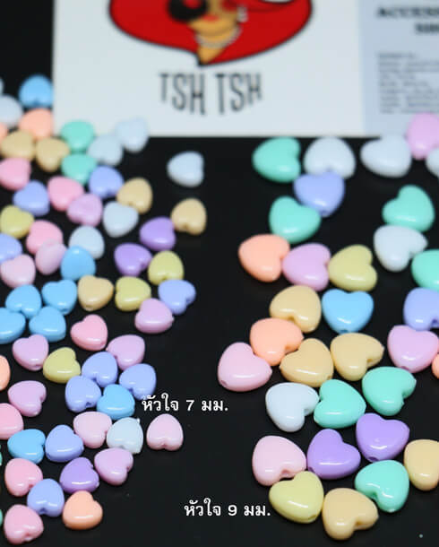 wish listลูกปัดทรงหัวใจ ขนาด 7 มม. สีพาสเทล มีรูร้อย สำหรับทำเครื่องประดับตกแต่ง ทำงานฝีมือ เช่น กำไรข้อมือ สร้อยคอ ตกแต่งเสื้อผ้า ขอเล่นเด็ก หรือใช้สำหรับเป็นสื่อสำหรับเด็กเล่นเพื่อเสร้อมพัฒนาการ เป็นต้น