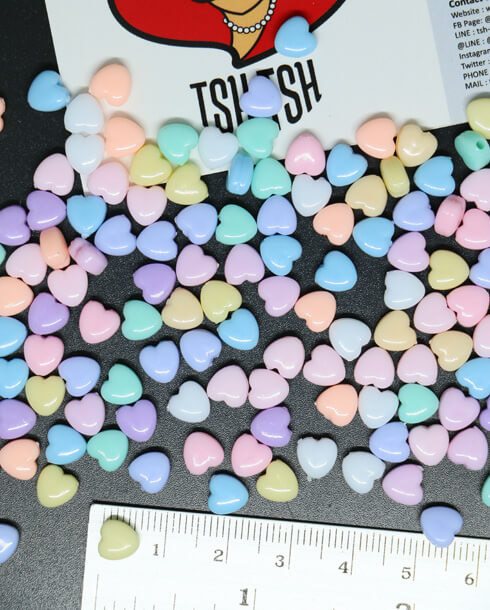 ลูกปัดทรงหัวใจ 7 มม. สีพาสเทล