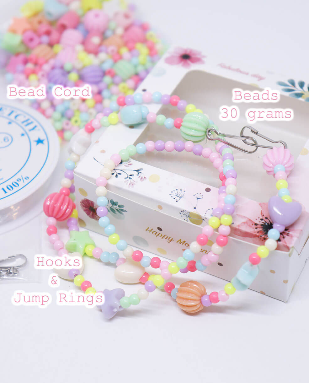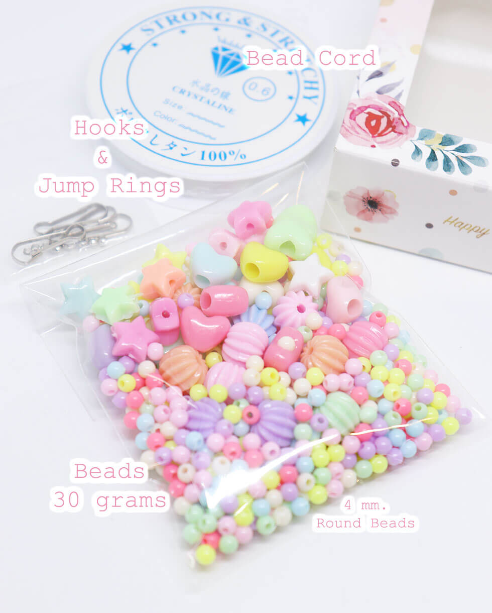 ประกอบด้วย : ลูกปัดกลม 4 มม., ลูกปัดรูปดาว, ลูกปัดรูปหัวใจ, ลูกปัดรูปเม็ดเบอร์รี่