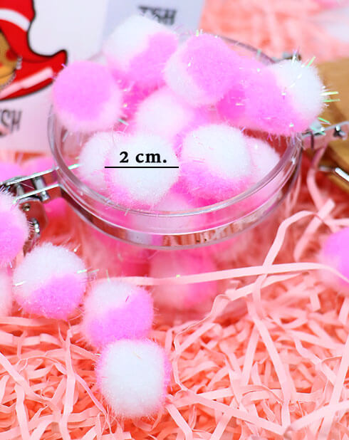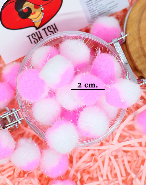 ปอม ปอม กำมะหยี่ มีดิ้น ขนาด 2 ซม. สีทูโทน ขาว ชมพู