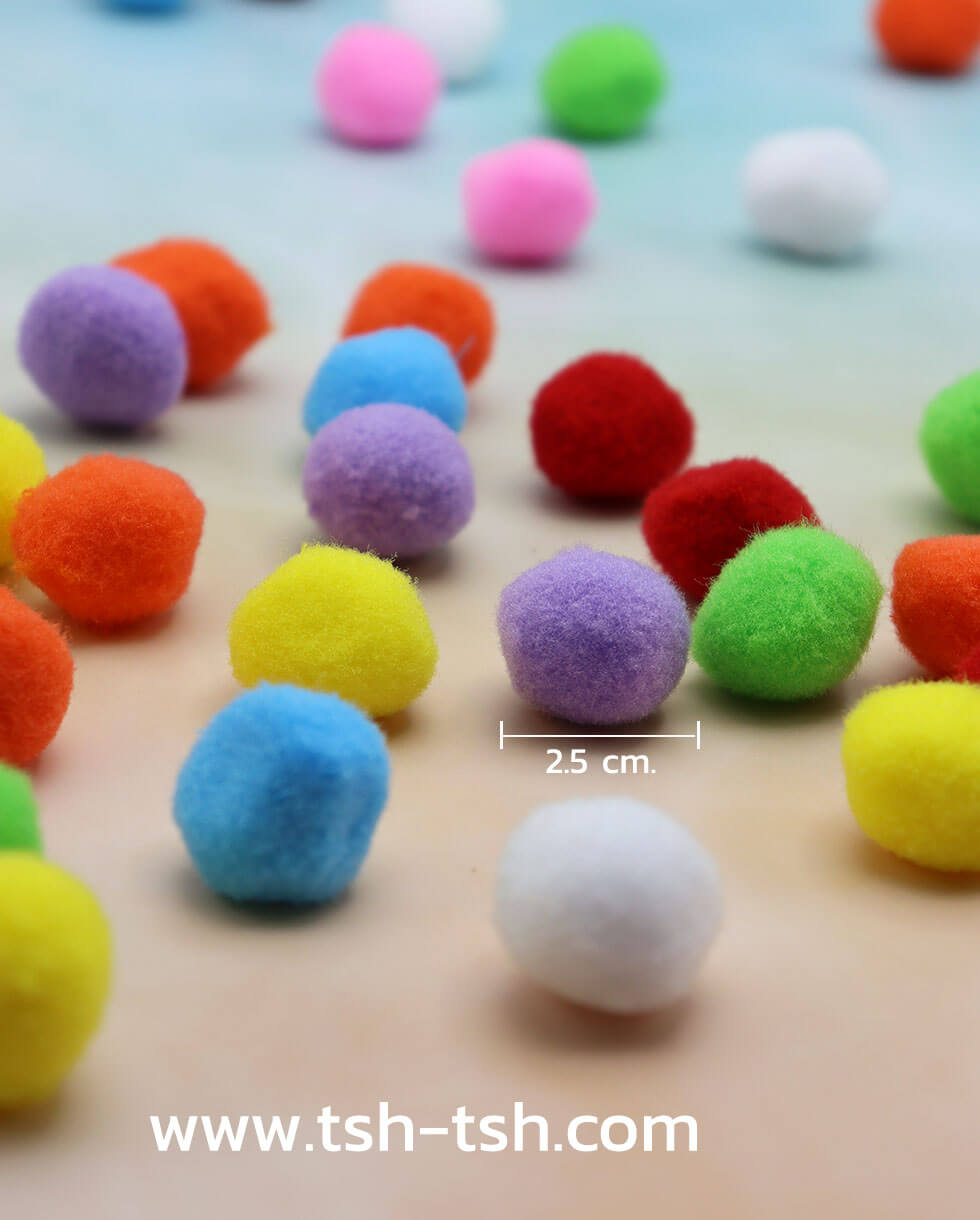 wish listปอม ปอม กำมะหยี่ ขนาด 2.5 ซม. คละสี ใช้สำหรับประดิษฐ์ ตกแต่ง อาทิเช่น ตกแต่งงานปาตี้ ประดิษฐ์ของเล่นแมว ของเล่นสัตว์เลี้ยง ทำเครื่องประดับ กำไร สร้อยคอ หรือของเล่นเสริมพัฒนาการสำหรับเด็กเป็นต้น มีจำหน่ายทั้งราคาปลีกและส่ง สามารถนำไปประสานร่วมกับอะไหล่อย่างอื่นได้ เช่นริบบิ้น เรซิ่น มุกครึ่งซีก และอีกมากมายหรือนำไปตกแต่งสร้างมูลค่าเพิ่ม
