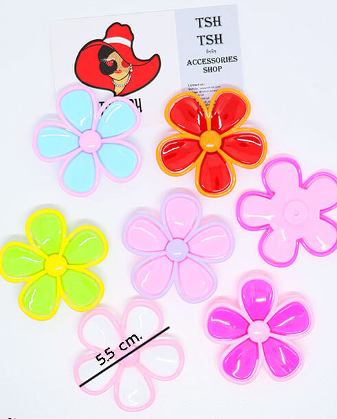 อะไหล่พลาสติกรูปดอกไม้ 5 กลีบ สีทูโทน ขนาด 5.5 ซม. คละสี