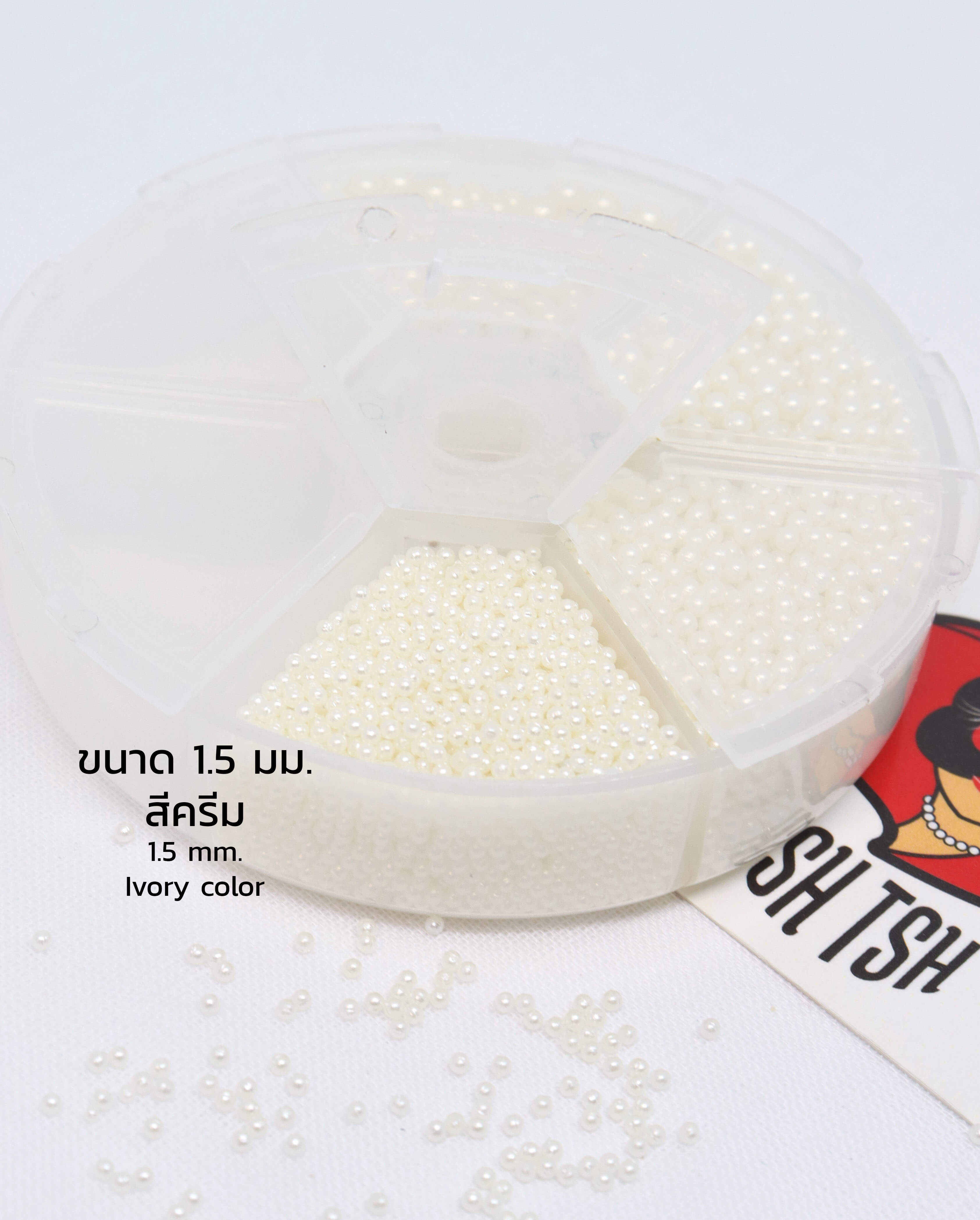 wish listมุกเต็มเม็ดทรงกลมไม่มีรูร้อย ขนาด 1.5 มม. สีครีม บรรจุ 1 กรัม ใช้สำหรับ ตกแต่งเสื้อผ้า ตกแต่งเล็บ ตกแต่งเครื่องประดับ คุณภาพดี มีจำหน่ายทั้งราคาปลีกและราคาส่ง สามารถนำไปประสานร่วมกับอะไหล่อย่างอื่นๆได้ เช่นริบบิ้น เรซิ่น และอีกมากมายเพื่อสร้างมูลค่าเพิ่มให้กับสินค้า