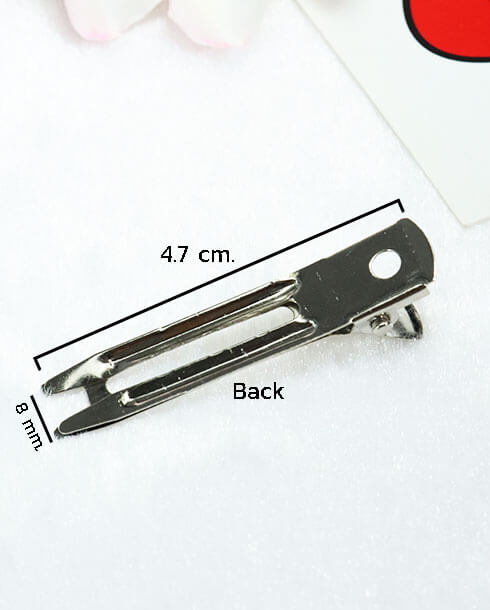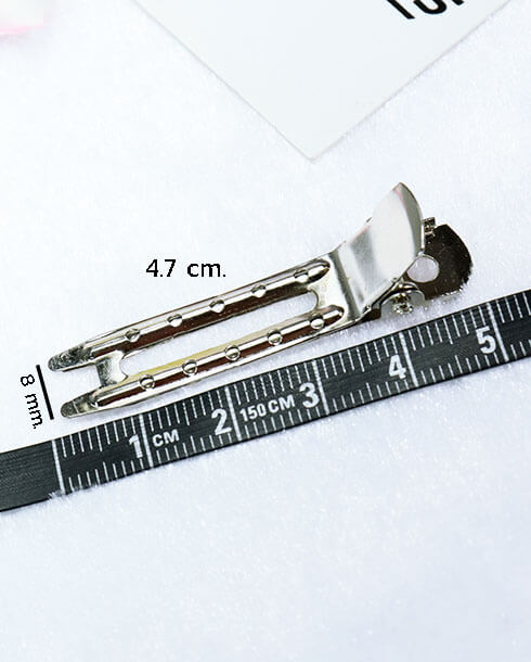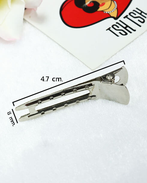 wish listปากเป็ดคู่นอก 4.7 ซม. สีเงิน ลักษณะมีสองขา ด้านบนเจาะรู 10 รู เหมาะสำหรับตกแต่งทรงผม ร้านทำผม นิยมใช้หนีบโรลทำผม หรือจะนำไปประสานร่วมกับอะไหล่อย่างอื่นได้ เช่นริบบิ้น เรซิ่น มุกครึ่งซีก และอีกมากมาย มีจำหน่ายทั้งราคาปลีกและส่ง