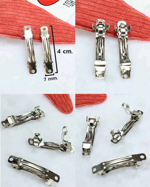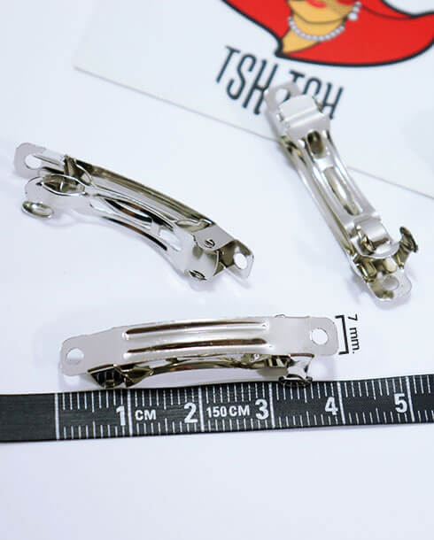 wish listโครงกิ๊บสปริง อะไหล่กิ๊บ ขนาด 4 ซม. สีเงิน เนื้อเงา สปริงแข็งแรง ทนทาน คุณภาพดี กิ๊บติดผม เป็นรุ่นยอดนิยม มีจำหน่ายทั้งราคาปลีกและส่ง นิยมนำไปประกอบทำเป็นเครื่องประดับ ประสานร่วมกับอะไหล่อย่างอื่นได้ เช่น ติดเน็ตทำผม เน็ตพยาบาล ริบบิ้น เรซิ่น มุกครึ่งซีก เพชรประดับและอีกมากมาย