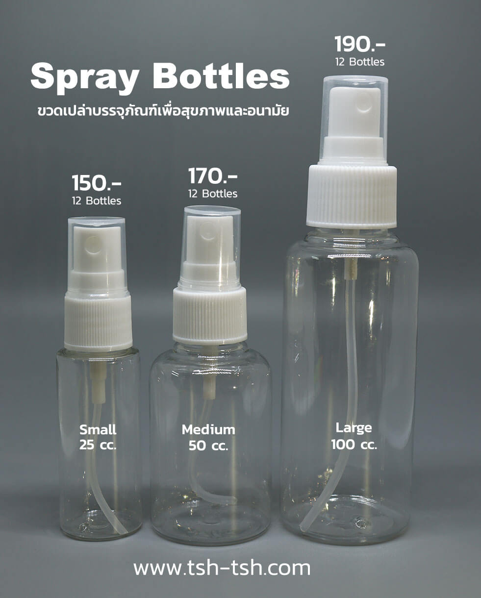 wish listขวดสเปรย์ บรรจุภัณฑ์สำหรับแบ่งเพื่อพกพาขนาด 50 ซีซี วิธีใช้ : กดฉีดหัวจะพ่นละอองออกมาเป็นฝอย เหมาะสำหรับบรรจุของเหลวที่เป็นน้ำ เช่นแอลกอฮอล์ฆ่าเชื้อโรค น้ำตบสำหรับฉีดพ่นใบหน้าให้สดชื่นเป็นต้น เหมาะสำหรับพกพาไปทุกที่