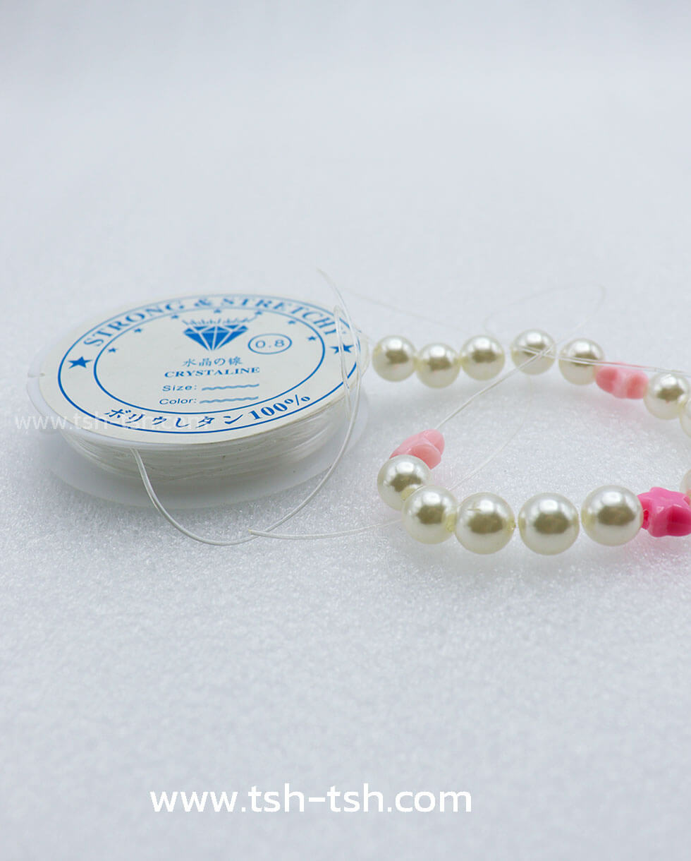 เอ็นยืดเส้นกลมร้อยลูกปัด สีใส ขนาด 0.8