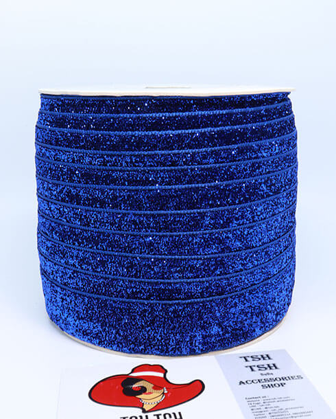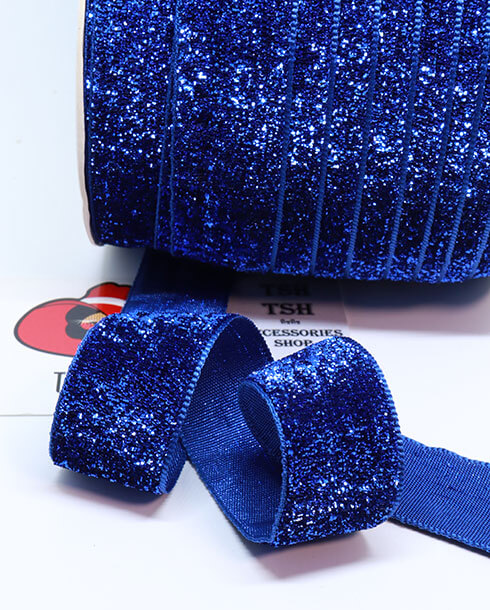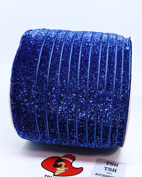 ริบบิ้นผ้ากากเพชร ขนาด 1 นิ้ว สีน้ำเงิน