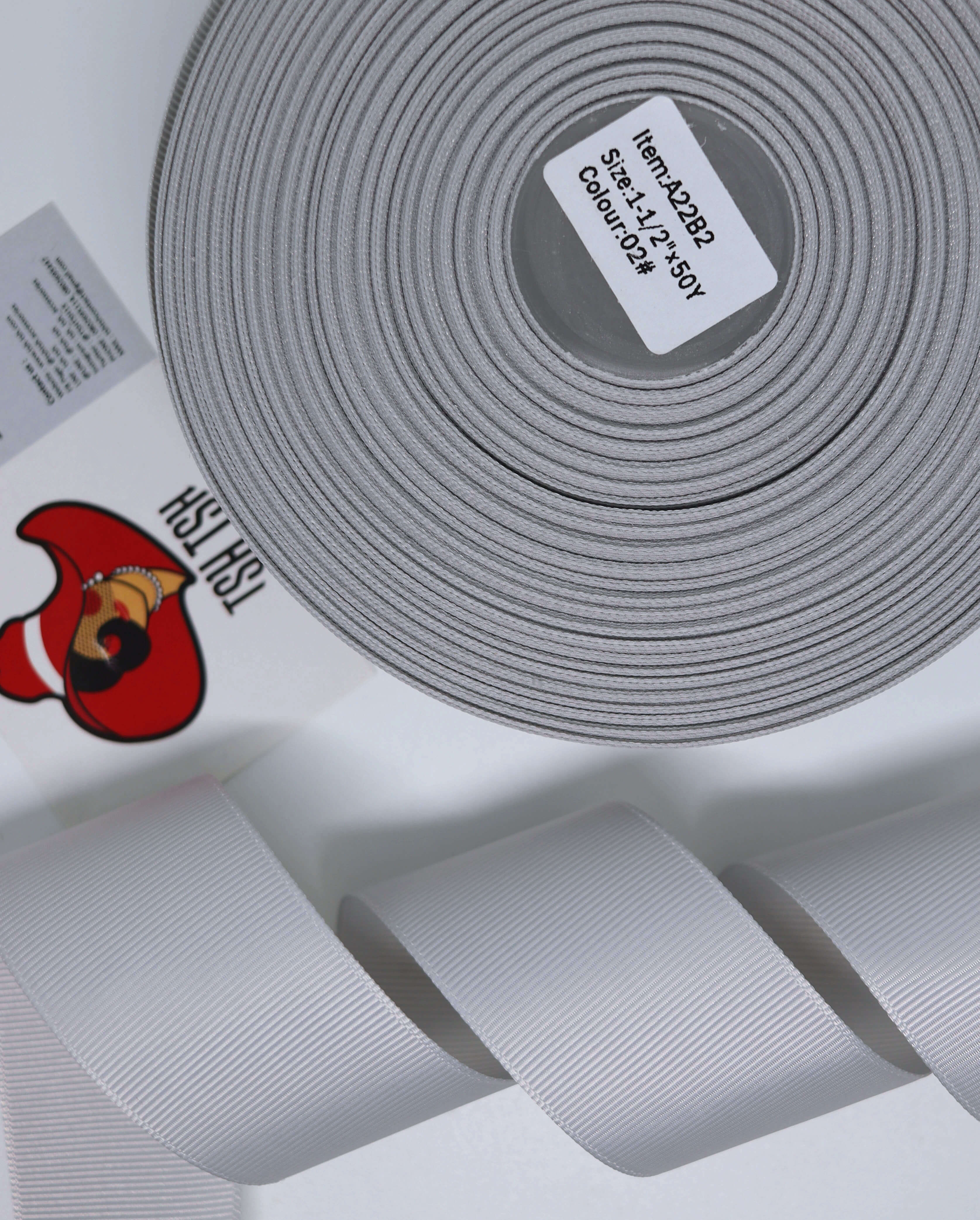 ริบบิ้นผ้ากรอสเกรน ขนาด 1.5 นิ้ว สีเทาอ่อน ยาว 50 หลา #02