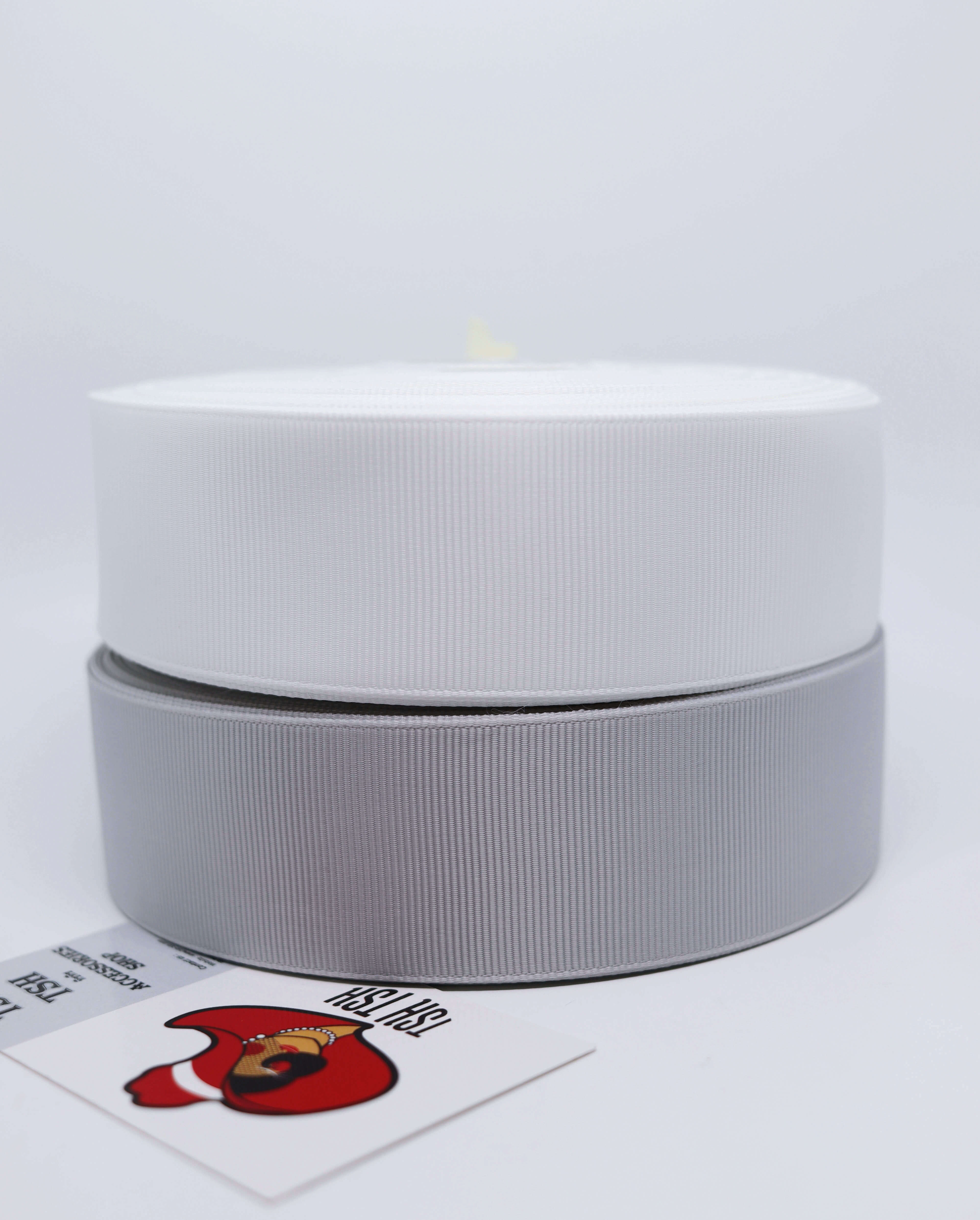wish listริบบิ้นผ้ากรอสเกรนขนาดกว้าง 1 นิ้ว (3.8 ซม.) สีเทา ยาวม้วนละ 50 หลา คือริบบิ้นลายเส้นทอฟูก ใช้สำหรับผูกผม ทำโบว์ ตกแต่งกิ๊บ ตกแต่งเสื้อผ้า ผูกกล่องของขวัญ งานพิธีต่างๆ เนื้อผ้าทอแน่น เงา สวย จับขึ้นรูป มีให้เลือกหลายขนาดหลายสี มีจำหน่ายทั้งปลีกและส่ง