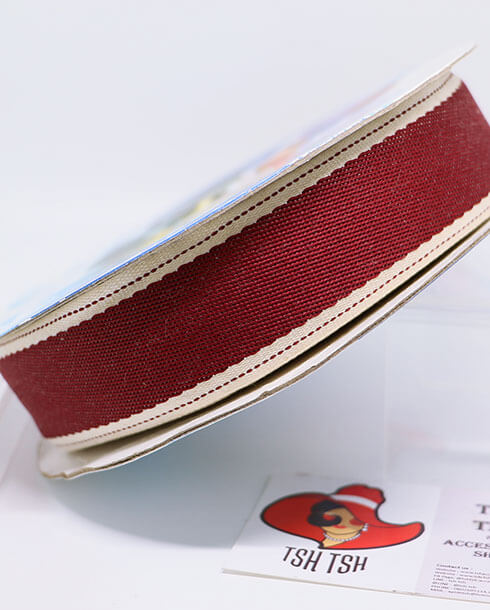 ริบบิ้นผ้ายีนส์ ขนาด 1.5 นิ้ว สีแดง ยาว 25 หลา