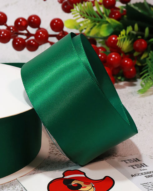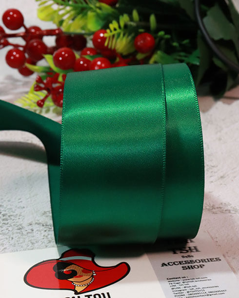 ริบบิ้นผ้าซิลค์ ขนาด 1.5 นิ้ว สีเขียวเข้ม เงา 1 หน้า ยาว 50 หลา #109