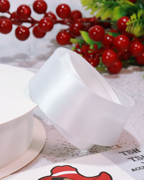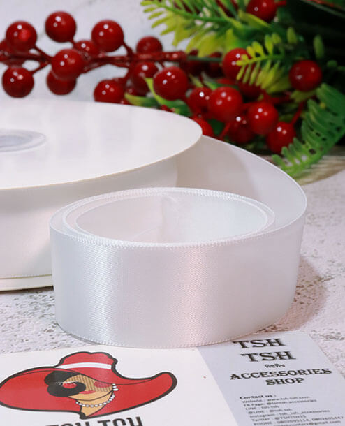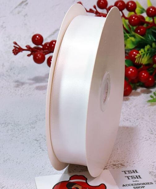ริบบิ้นผ้าซิลค์ ขนาด 1 นิ้ว สีขาว เงา 1 หน้า ยาว 50 หลา #05