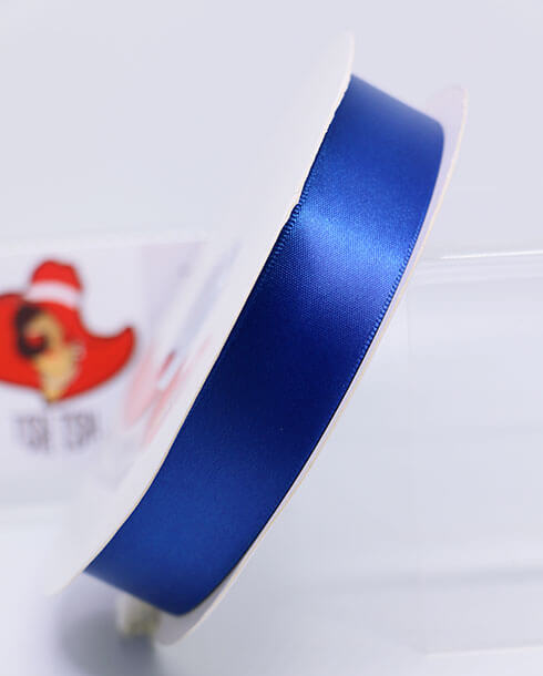ริบบิ้นผ้าซิลค์ ขนาด 1 นิ้ว สีน้ำเงิน เงา 1 หน้า ยาว 50 หลา #60