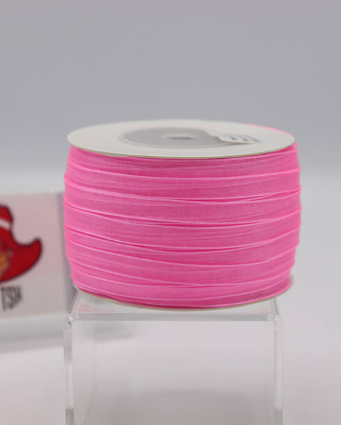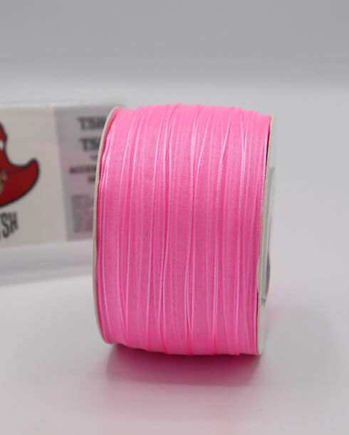 ริบบิ้นผ้าแก้ว ขนาด 7 มิล สีชมพูอ่อน ยาว 120 หลา #147