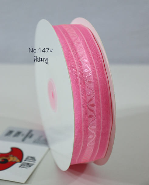 wish listริบบิ้นผ้าแก้ว 1 นิ้ว ทอลายไทย สีชมพูกลาง (No.147#) ยาว 50 หลา เนื้อผ้าเบา บาง สวย คลาสสิค จับขึ้นรูป ใช้สำหรับผูกผม ผูกสิ่งของ ตบแต่งเสื้อผ้า สินค้า ตกแต่งตามงานพิธีต่างๆ มีให้เลือกหลายขนาดหลายสี มีจำหน่ายทั้งปลีกและส่ง