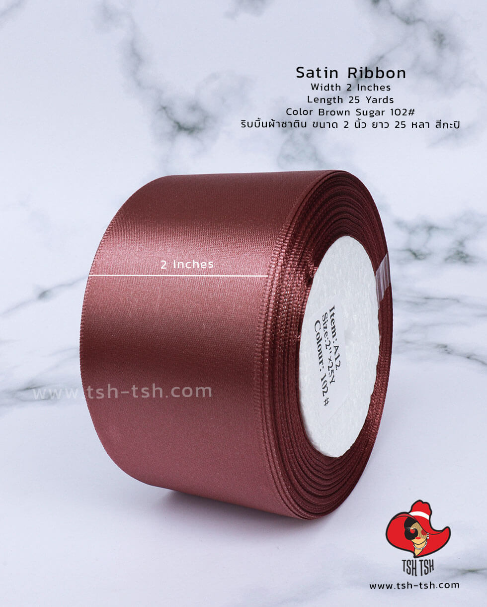 ริบบิ้นผ้าซาติน ขนาด 2 นิ้ว สีกะปิ เงา 1 หน้า ยาว 25 หลา #102