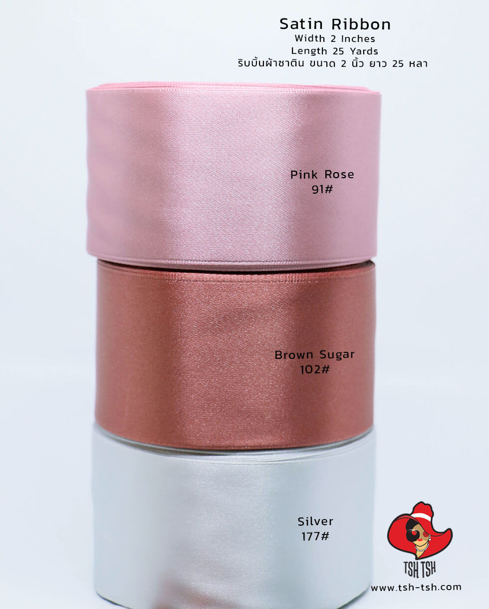 wish listริบบิ้นผ้าซาติน 2 นิ้ว 1 หน้า ยาวม้วนละ 25 หลา เนื้อสัมผัสนุ่มเนื้อผ้ามันเนื้อผ้าทอแน่นเงาสวยจับขึ้นรูปง่ายนิยมนำมาผูกผม กล่องของขวัญ ตกแต่งเสื้อผ้า สินค้า ตบแต่งตามงานพิธีต่างๆ มีให้เลือกหลายขนาดหลายสี มีจำหน่ายทั้งปลีกและส่ง