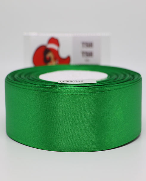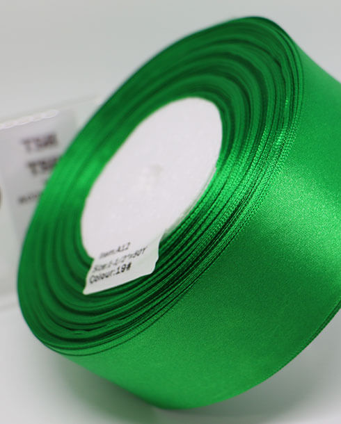 ริบบิ้นผ้าซาติน ขนาด 1.5 นิ้ว สีเขียวเข้ม เงา 1 หน้า ยาว 50 หลา #19