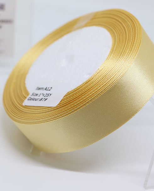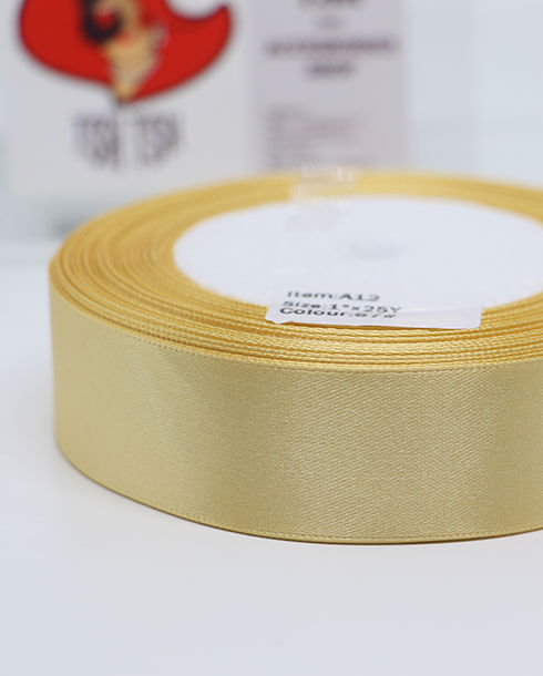 ริบบิ้นผ้าซาติน ขนาด 1 นิ้ว สีครีมทอง เงา 1 หน้า ยาว 25 หลา #87