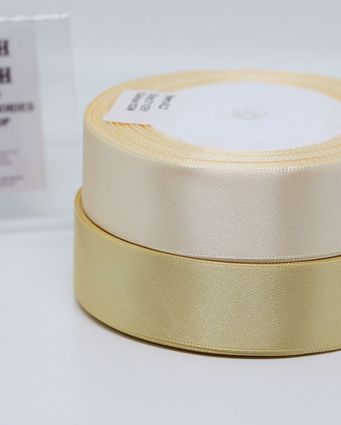 wish listริบบิ้นผ้าซาติน 1 นิ้ว 1 หน้า สีครีมทอง ใช้สำหรับผูกผม ผูกสิ่งของ ตบแต่งเสื้อผ้า สินค้า ตบแต่งตามงานพิธีต่างๆ เนื้อผ้าทอแน่น เงา สวย จับขึ้นรูป มีให้เลือกทั้งแบบเงาหน้าเดียวและเงาสองหน้า หลายขนาดหลายสี มีจำหน่ายทั้งปลีกและส่ง