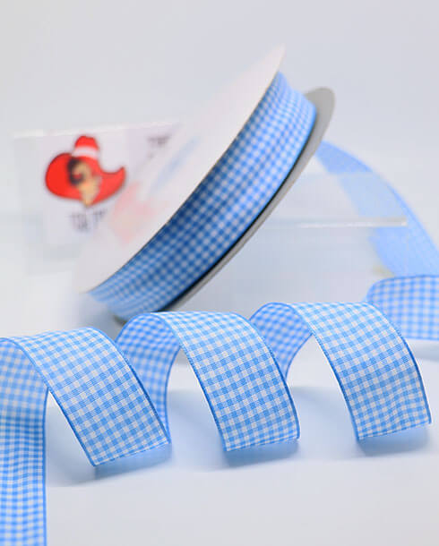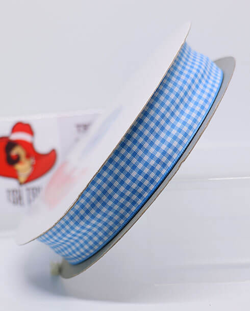 ริบบิ้นผ้าลายสก็อต ขนาด 1 นิ้ว สีฟ้าขาว ยาว 50 หลา #E1-7