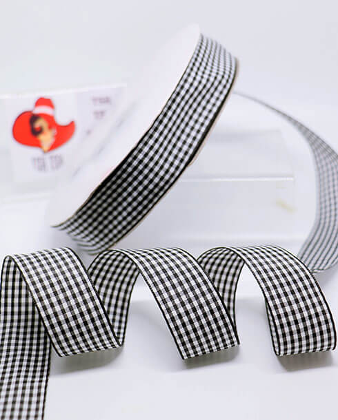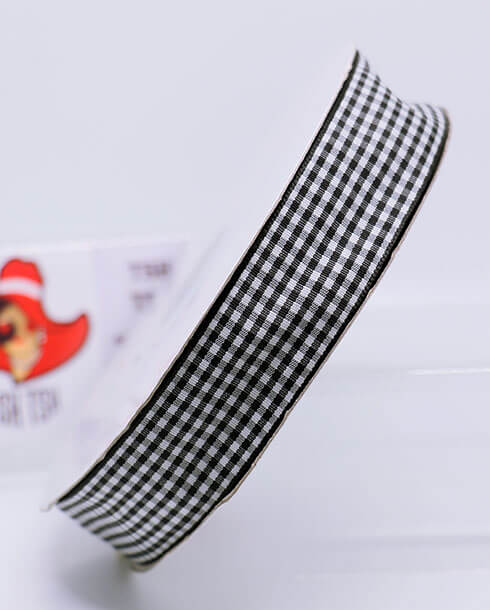 ริบบิ้นผ้าลายสก็อต ขนาด 1 นิ้ว สีดำขาว ยาว 50 หลา #E1-6