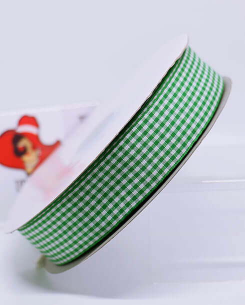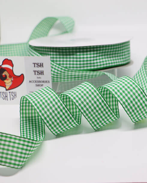 ริบบิ้นผ้าลายสก็อต ขนาด 1 นิ้ว สีเขียวขาว ยาว 50 หลา