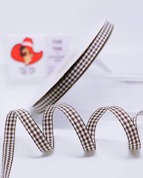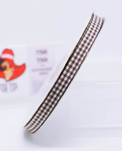 ริบบิ้นผ้าลายสก็อต ขนาด 10 มิล สีน้ำตาลขาว ยาว 50 หลา #S011