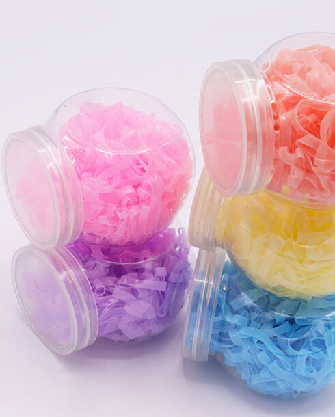 ยางมันเกรด A บรรจุในกระปุกใส ขนาดเส้นใหญ่ สีม่วงพาสเทล