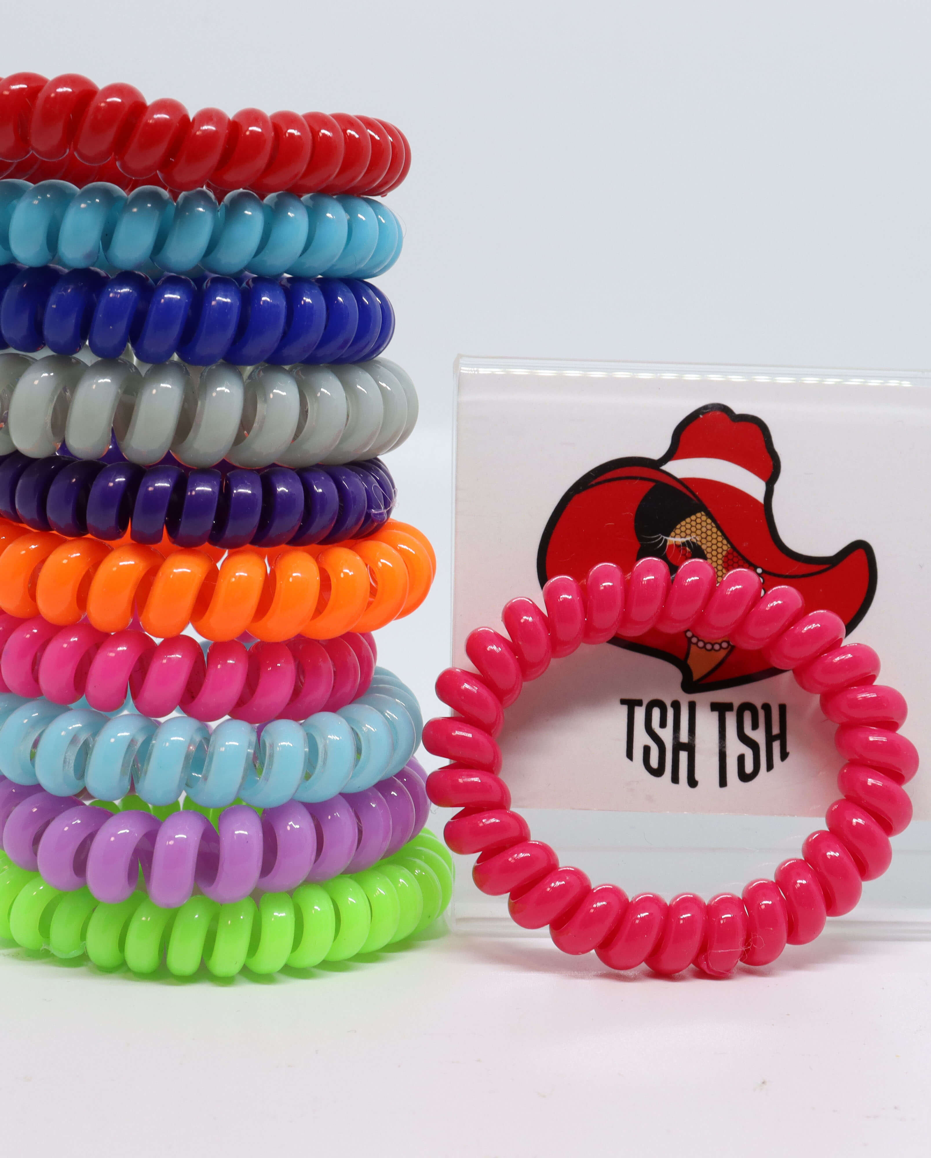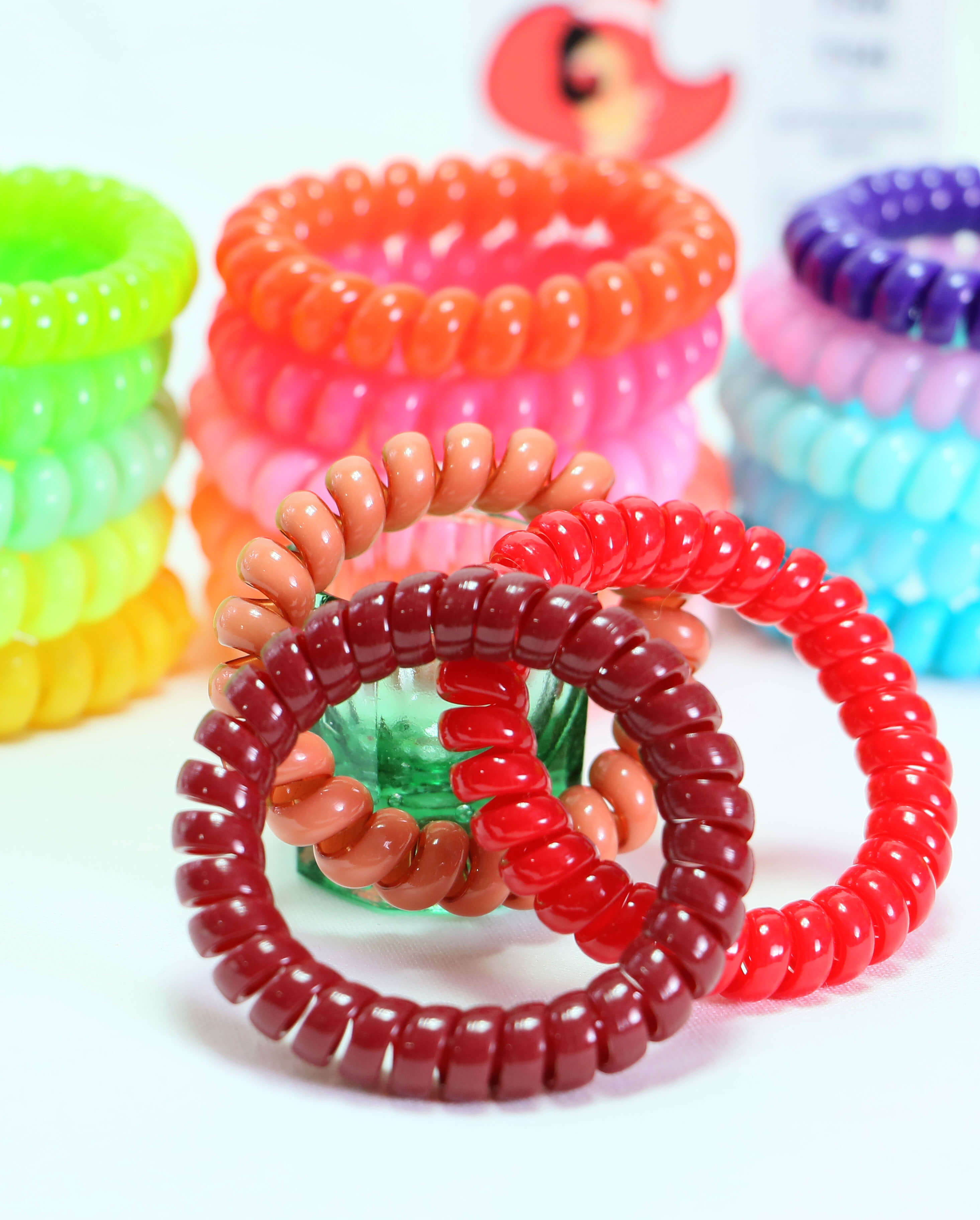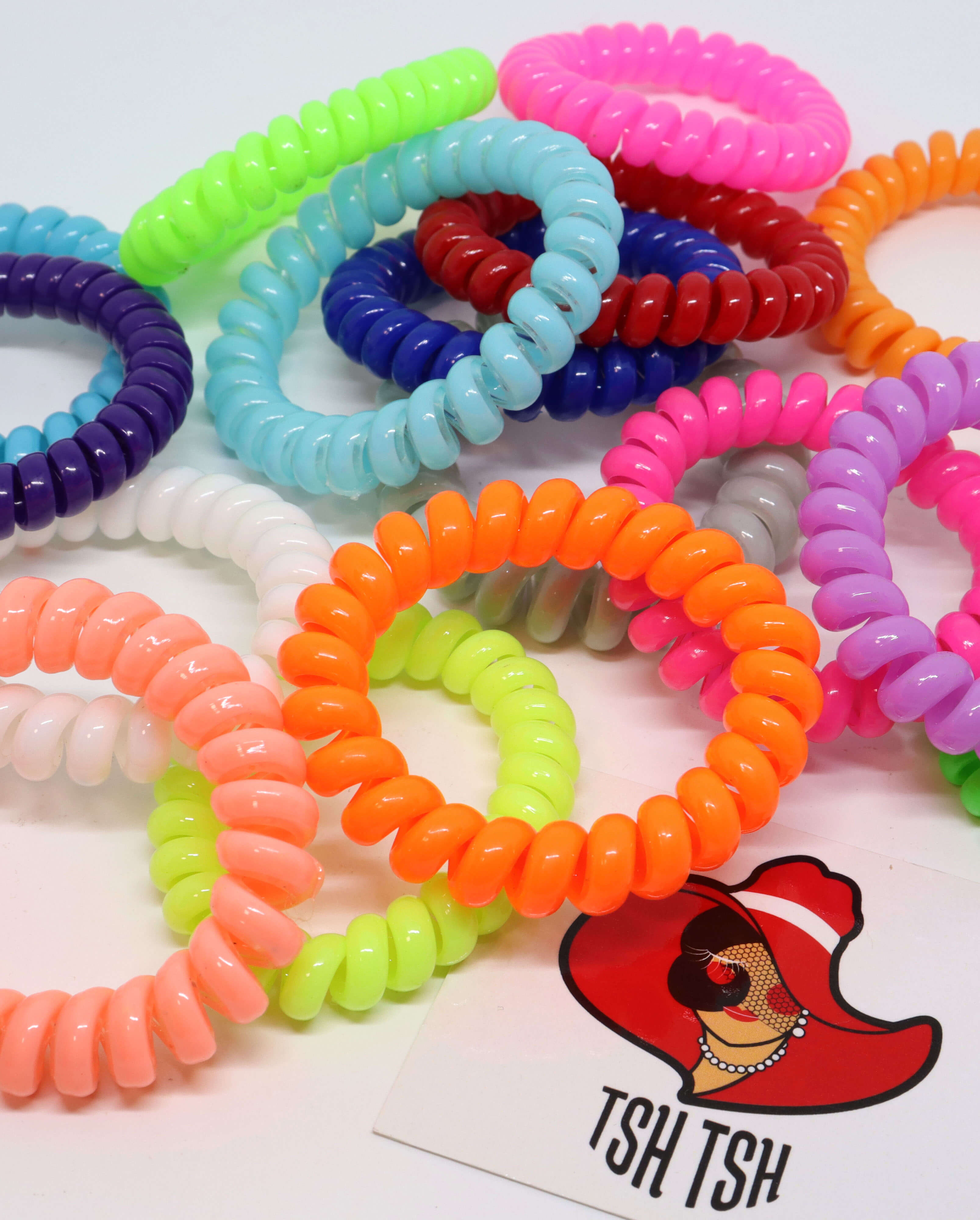 เส้นผ่าศูนย์กลางประมาณ 4 ซม. (เส้นใหญ่) ยีดได้สูงสุดประมาณ 22 ซม. เส้นรอบวง 1 ซม. เส้นเกรียวเหมือนสายโทรศัพท์ ยืดหยุดสูง คืนตัวเร็ว เหนียว ไม่ทำให้ผมเป็นรอย ไม่กินผม ไม่ดึงผม ไม่ทำให้ปวดหัว ใช้ได้หลายครั้ง สามารถนำมาใส่เป็น wirst band กำไรแขน หรือทำเป็นพวงกุญแจ มีจำหน่ายทั้งราคาปลีกและส่ง สามารถนำไปประสานร่วมกับอะไหล่อย่างอื่นได้ เช่นริบบิ้น เรซิ่น มุกครึ่งซีก และอีกมากมายหรือนำไปตกแต่งสร้างมูลค่าเพิ่ม
