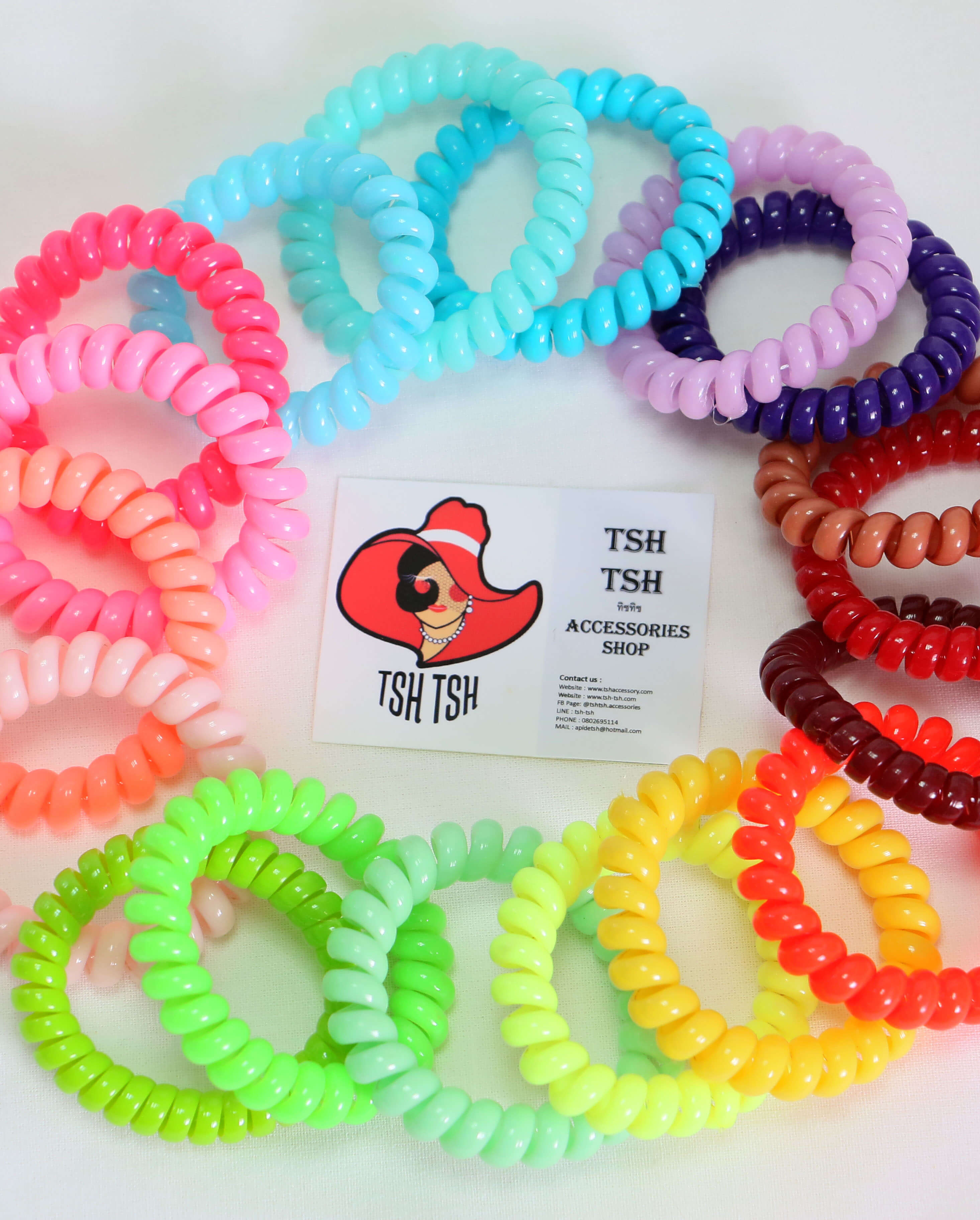 wish listเส้นผ่าศูนย์กลางประมาณ 4 ซม. (เส้นใหญ่) ยีดได้สูงสุดประมาณ 22 ซม. เส้นรอบวง 1 ซม. เส้นเกรียวเหมือนสายโทรศัพท์ ยืดหยุดสูง คืนตัวเร็ว เหนียว ไม่ทำให้ผมเป็นรอย ไม่กินผม ไม่ดึงผม ไม่ทำให้ปวดหัว ใช้ได้หลายครั้ง สามารถนำมาใส่เป็น wirst band กำไรแขน หรือทำเป็นพวงกุญแจ มีจำหน่ายทั้งราคาปลีกและส่ง สามารถนำไปประสานร่วมกับอะไหล่อย่างอื่นได้ เช่นริบบิ้น เรซิ่น มุกครึ่งซีก และอีกมากมายหรือนำไปตกแต่งสร้างมูลค่าเพิ่ม